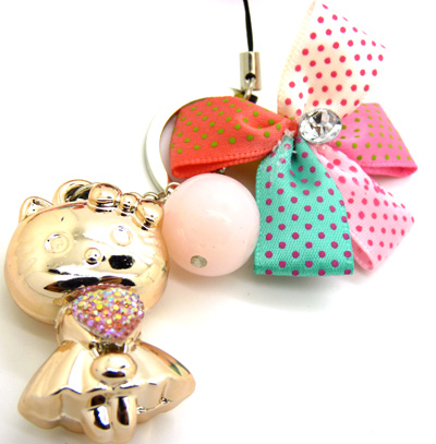 蝴蝶结猫咪喷漆橡皮珠荧光色 手机挂件 钥匙扣(1)