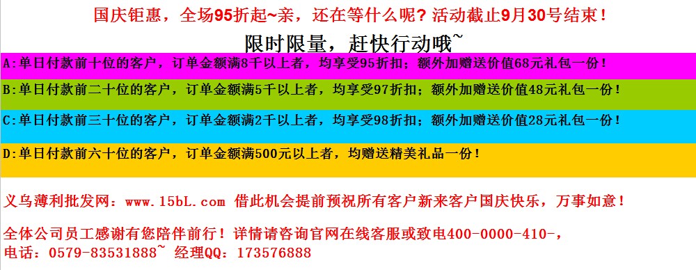 义乌薄利将产品价格下调至最低并且在所有同行业业绩不景气的时打出价格牌!让我们的客户可鲜明对比价格优势!