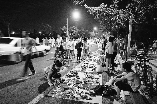 1.年轻男女一路在地摊买东西,不管是男的要还是女的要,都要向女的推销.