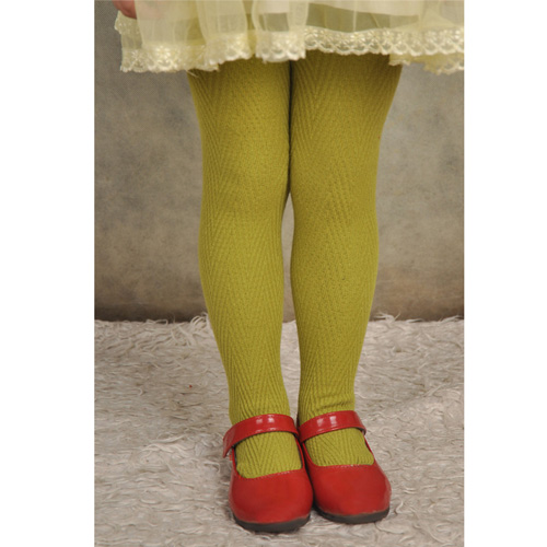 女童连裤袜/秋冬菱纹波浪针织宝宝打底裤袜--绿色M号(411152)