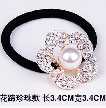 ABS珍珠橡皮筋发圈 高弹韩国水钻头饰花朵头绳 韩版头花