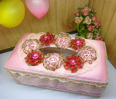 日韩家饰批发百褶花边布艺纸巾盒 八朵花纸抽盒(长)