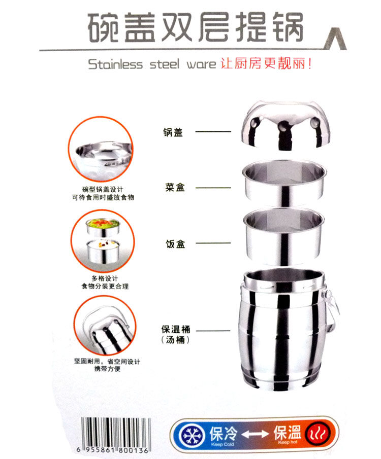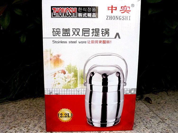 厂家直销2.2L不锈钢双层保温提锅 多层分格保温饭桶 便捷式便当盒提锅