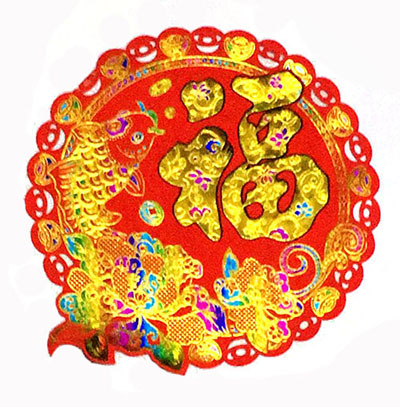 35#福字门贴34cm高档植绒无纺布镂空新款2017鸡年春节年画福字贴