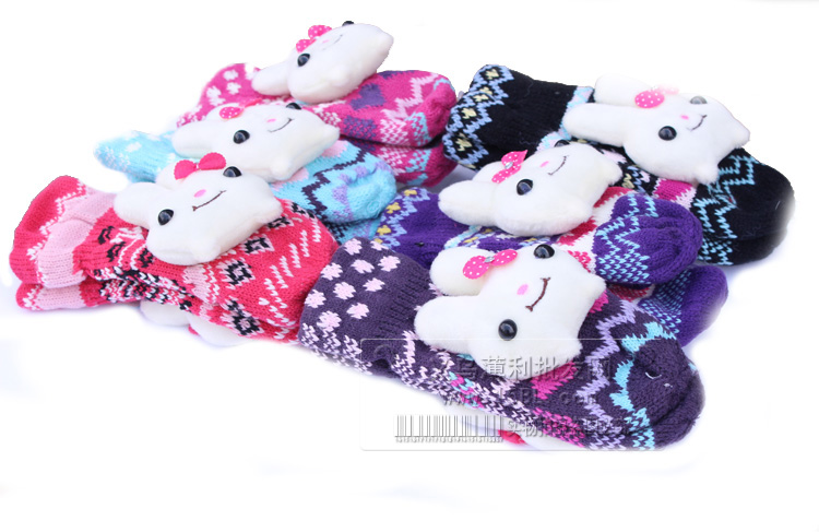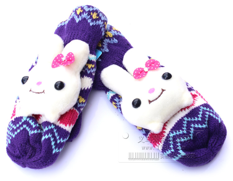 可爱加厚毛绒兔子手套/保暖全指手套/可爱手掌手套/针织手套