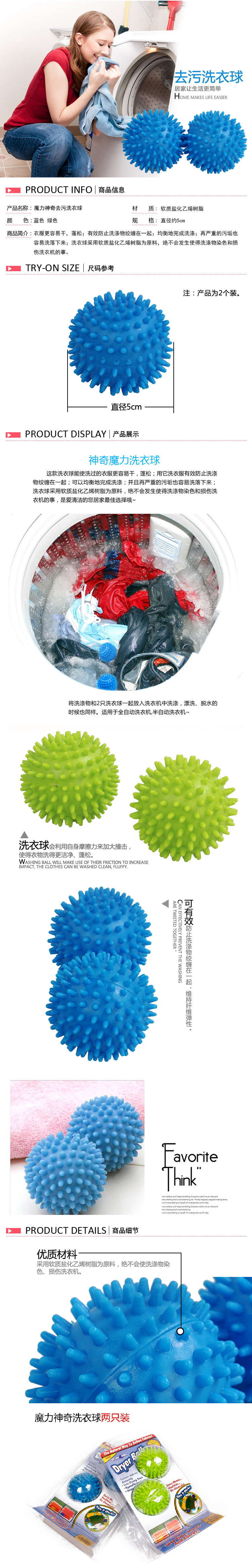 洗衣物时,将这洗衣球投入洗衣机中,这些小球就会利用自身强大的摩擦力来加大撞击,使得衣物洗得更干净了,衣服干的更快,并保护衣服不受伤害,衣服看起来更蓬松.,不信你来试试看!在日本和韩国这可是路人皆知的洗衣法宝!