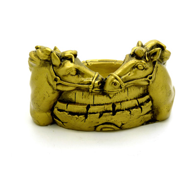 古典工艺创意烟缸 马图腾烟灰缸摆件家居摆设-黄双马烟缸