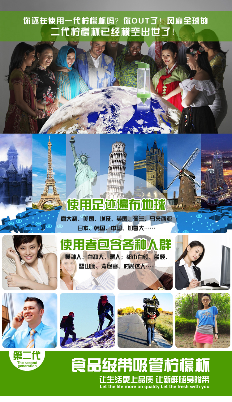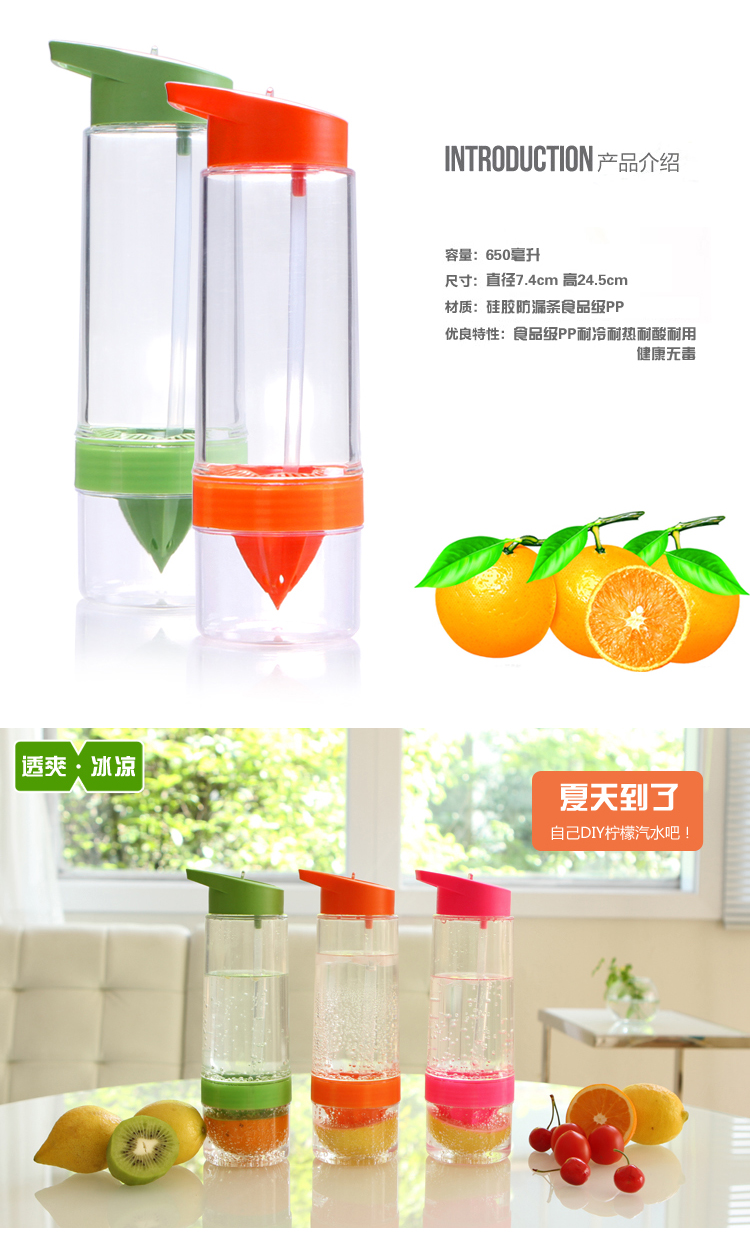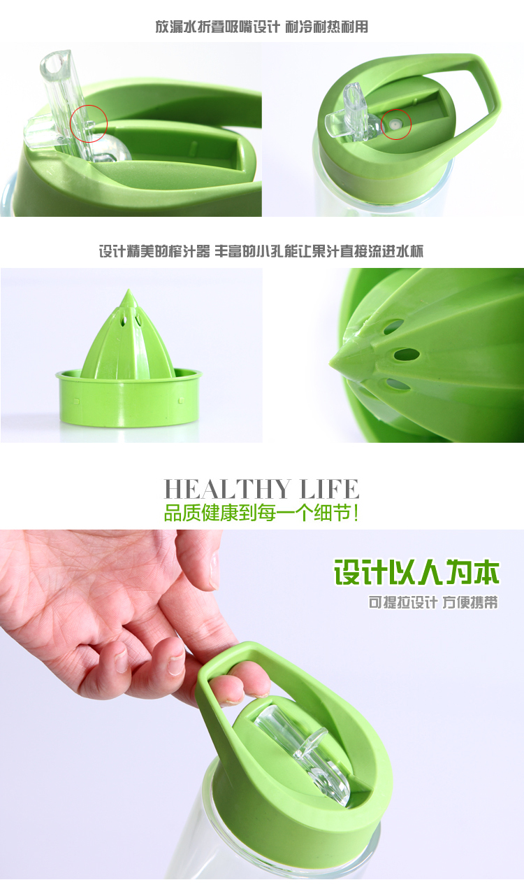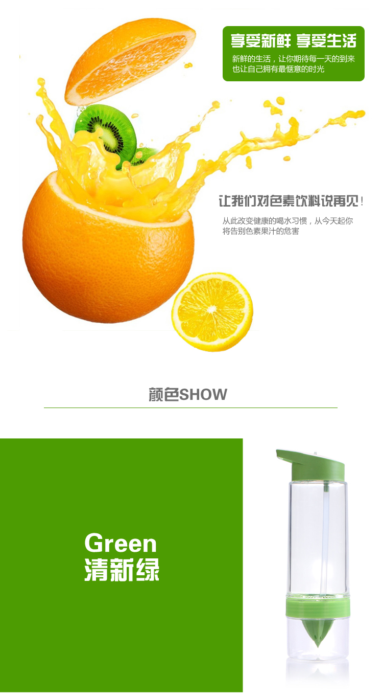 商品名称:650ml第二代手动榨汁柠檬杯/水果杯--绿色 装箱数量:60 商品重量:0.316kg 商品材质:食品级PP 商品包装:开天窗精美彩盒 商品尺寸:直径7.4*高24.5cm 条形码:9854100160 包装尺寸:9*9*25CM