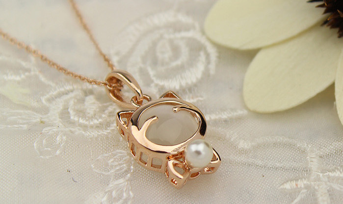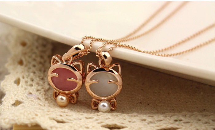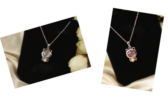精美精致可爱粉色猫眼石镶...