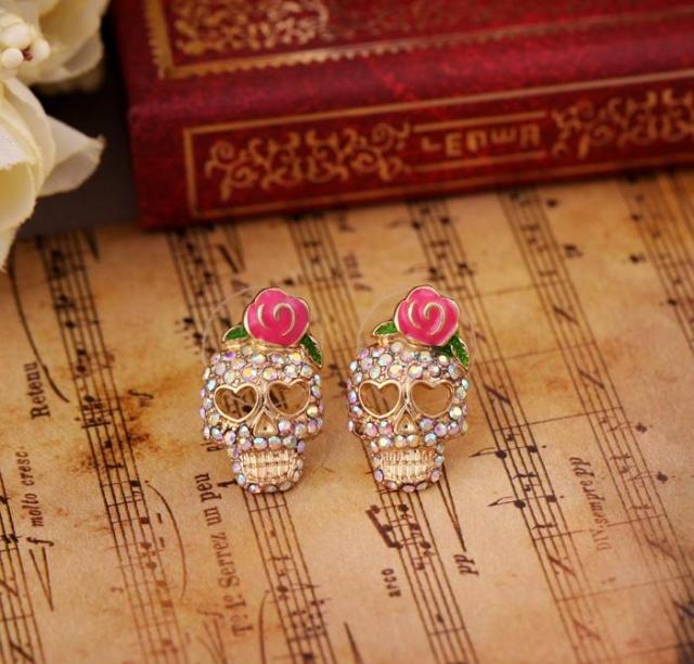 欧美外贸饰品 玫瑰花骷髅头 耳钉