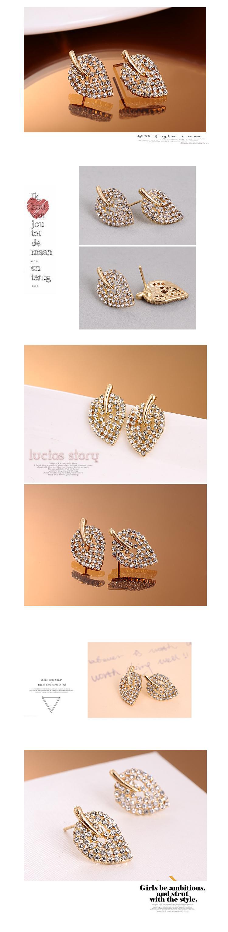 韩版饰品 时尚精美镂空镶满钻树叶子耳钉 耳饰 耳环 女