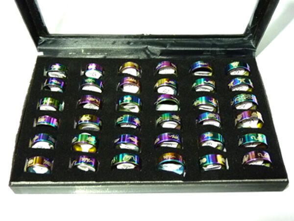 非主流炫彩合金刻花戒指