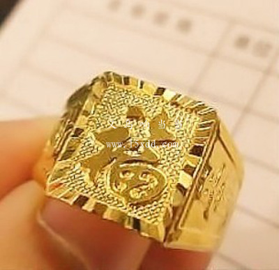 高质量镀黄金戒指男 保色24K金戒指发财福字金戒指