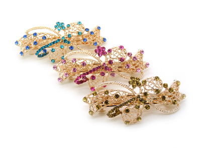 商品属性 [规格] 约9.7*3.7cm [颜色] 颜色款式混搭 [商品材质] 合金+锆石 [最小起订量] 6个