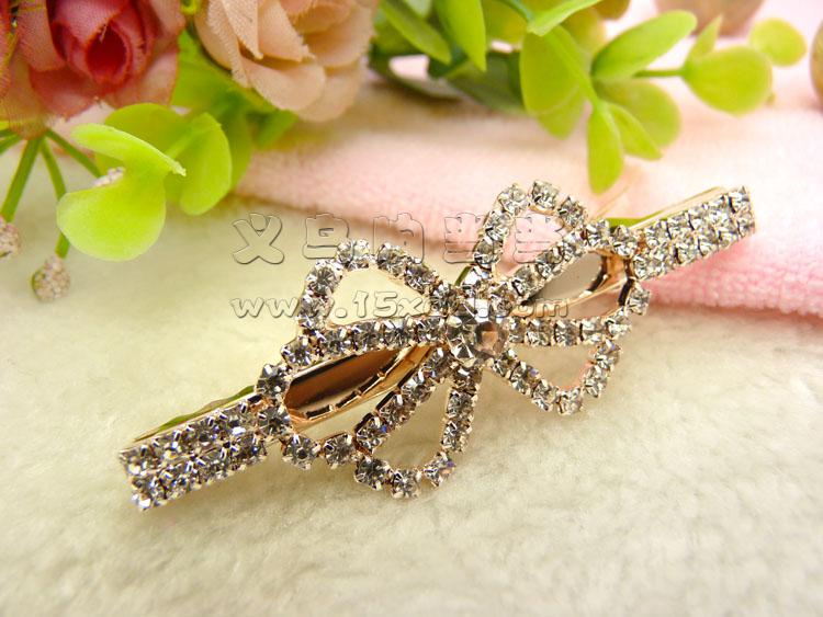 韩版水钻发夹蝴蝶结鸭嘴夹...