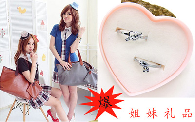 情侣戒指 姐妹一对创意韩版女戒子 钛钢姐妹指环首饰品
