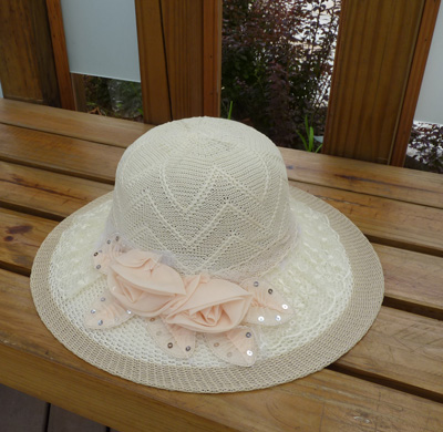 防紫外线遮阳帽 编制大沿帽 夏天女士蕾丝亮片礼帽 太阳帽