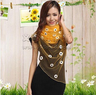 新款百花争艳印花巴厘纱围巾 学生丝巾 -时尚花女保暖围巾