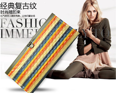 新款条纹长款钱包 韩版女士钱夹 卡包女手拿女钱包